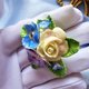 在二戰期間這些嬌小的手製品和手繪花卉胸針套裝,其明亮和鮮活的顏色肯定會活躍年輕女性的心在戰爭年代。從研究來看,從1945年左右到1960年初,一些英國工廠雖然不是很多,但生產骨質瓷器首飾倒不少,生產骨瓷CHINA珠寶的公司約有1945家。