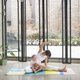 一定要使用瑜伽墊,這樣才能防止做親子瑜伽時受到傷害。