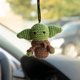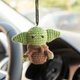 Stuffed Baby Yoda is a cute accessory on the car mirror. It is small enough to not be distracting but still noticeable. The crocheted suspension does not knock on the windshield while driving and is safe during emergency braking.