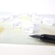 將撕下的筆記本內頁隨手筆記縮小製成耳環。