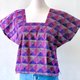 作品以紫色系色塊與黑灰線條構築出連續幾何方格,並以閃亮的淺紫 Swarovski 水鑽點綴,彷彿星光在無垠空間中閃爍。