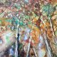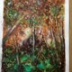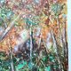 Every brushstroke reflects the changing season — light flickers through slender branches, and textured foliage dances between soft greens and deep ochres. The painting balances spontaneity and structure, inviting the viewer into a serene woodland bathed in golden light.