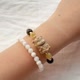 每一顆珠子皆由職人手工精挑,搭配金色點綴,整體配色高雅柔和。