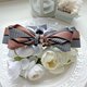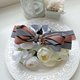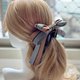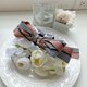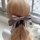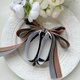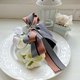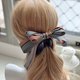 使用挺感的千鳥紋拼素色織帶折成自行發想的立體蝴蝶結,蝴蝶結設計成不對稱的圖案以增加特色;夾身配上燙鑽織帶和素色織帶,喜歡較為個性風格的人可以選擇這款。