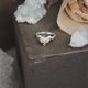 It is decorated with twisted vine and leaves and covered with fully handmade dragon scale textures on his surface. A gentle combination of pink stone and white not patinated silver. Every detail of this ring is carefully worked out.