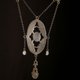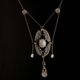 這是一件來自德國1890年代新藝術期的吊墜項鍊,整體以純銀鎏金(silver gilt)打造,使用浮雕琺瑯與珍珠貝母(mother of pearl)裝飾。