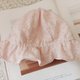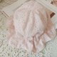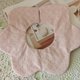 刺繡雛菊布料 轉轉花兜+花型嬰兒帽(適合頭圍44公分以下) 刺繡布縫製成圍兜獨特又典雅 360度使用轉轉花兜:雙面嬰兒圍兜