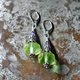 淡いバイカラーアンティークウランガラスとシルバービーズ、アメジストを繋いだピアスです。