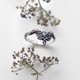 Set of three rings: Tree Ring with gray moonstone + Leaf and Vine Ring with rainbow moonstone + Twig Ring with ethiopian opal.