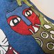 ▲ 一名婦女正在用「鎖鏈刺繡」方式創作驚喜花色給我們看,四處搜尋靈感創作是她們工作最大的樂趣之一。