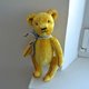 一隻帶著親切微笑的可愛黃色泰迪熊是用老式毛絨製成的,裡面塞滿了松木屑。頭部和爪子是活動的,用開口銷連接。尺寸:站立高度 8.7 英寸(22 厘米),坐姿 6.7 英寸(17 厘米)。護理:乾洗。