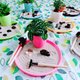 素材/成分:馬卡龍色底盤(顏色隨機)、3吋彩衣盆(顏色隨機)、細流砂、黑檀石、園藝工具三件組、培養土、造景物(隨機)、幸運植物(隨機)