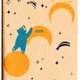 本好きな青いクマが月の上で読書するデザインと満ち欠けする月の上で本を取ろうと背伸びするデザイン。