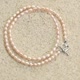 以天然粉色米型淡水珍珠為主角,珠徑6–7mm,光澤柔和,搭配銀色愛心扣,展現溫柔浪漫氣質。手工串製,簡約優雅,適合紀念日、生日或情人節佩戴,傳遞愛意與柔美。