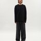 此款選用舒適柔軟的大絨布製作,布料扎實卻保有親膚觸感。版型上以寬鬆輪廓為基礎,並在袖身加寬設計,拉長手臂比例,增添修長視覺效果。