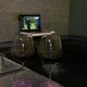 **《漩光之刻》**系列以壓克力流體畫創作,讓顏料在玻璃底座間自由流動、交融成形,凝結出如光影般變幻的紋理。