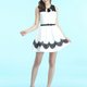 成份: 特多龍100% 1.黑白撞色小禮服 2.上身剪接黑色布匹蕾絲透膚設計 3.裙襬上壓黑色睫毛蕾絲 4.衣身公主剪接, 合身剪裁 5.斜邊開隱形拉鍊方便穿脫 6.附黑色蝴蝶結皮帶 7.印字LOGO蝴蝶結活動別針及黑色玫瑰立體花