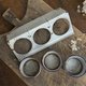 這是一個充滿復古魅力的古董法國琺瑯三件組廚房或洗衣房收納架,散發著經典的法式鄉村風格,白色琺瑯的底色搭配藍色的邊緣與字體,展現出經過時間洗禮的自然舊化與歲月痕跡,三個小罐子分別印有法文Savon(肥皂)、Soude(蘇打)和Sable(沙子),體現了當時生活用品的收納習慣與簡約實用主義,整體材質為厚實的鑄鐵鍍琺瑯,結構堅固,既可作為壁掛式陳列,也能平放於檯面。