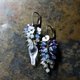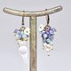 オーストリアヴィンテージ鳥ビーズとたわわなストーン、白蝶貝の小花を繋いだアンシメトリーなピアスです。
