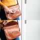 啡色的復古真皮袋,皮質厚實,中性設計男女適用。內部有兩個主格和中間一個拉鏈格,肩帶可以調節長短,除了可作單肩袋和斜孭袋外,還可用作手提袋。