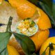 This tutorial includes the creation a whole mandarin and a half mandarin and a cane for slices, but does not cover the making of a ceramic plate.