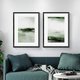 以水墨般的筆觸描繪靜謐遠景,水綠與灰白交融,彷彿遙望天際的湖泊,帶來無盡的想像與心靈的寧靜。