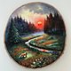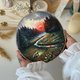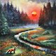 A unique painting of the forest at sunset on natural wood. Made with great attention to detail and colors. This rustic wooden slice is made of recycled trees, hand-painted with acryl. The artwork is ready for shipment to find its new home and decorate it.
