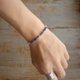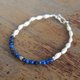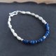 こちらの腕輪は、夜空を思わせるラピスラズリと、きらりと輝く星のようなカレンシルバーの粒を繋げ、ジュズダマとの美しいコントラストを生み出しました。