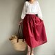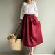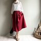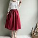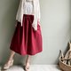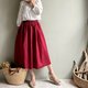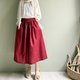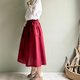 緋紅之夜/暗紅色棉麻鬆緊帶裙頭口袋中長裙/圓裙