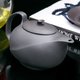 從壺身到杯盤,每一筆線條皆如建築設計般嚴謹,完美詮釋 現代主義極簡風格。壺身側面一道自然旋轉的螺旋弧線,為靜謐的黑色增添動感與層次,彷彿夜空中微光閃現的彗星尾跡,令人心醉神迷。