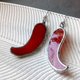 Glass pepper scarlet witch earrings. red curvy wavy glass earrings. stained glass tiffany wavy curved earrings.