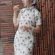 - 【豆米乳】民國復古風 貓貓印花/全開襟旗袍