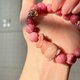 |粉色精靈兔|阿拉善瑪瑙兔兔是一個溫柔的豆沙粉色和一樣粉色的薔薇輝一起搭配加上粉色鋯石頭路路通沙金一整個粉色系點滿,還有可愛的粉色花以及蘿蔔配飾