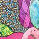 Look closer, you will find many natural elements, blue spirals are water or ocean, the green stripes are forest or leaves, violet blocks are stones, demi-circles dots are seeds, a shiny river flows between two elephants and hold the earth. Wish you enjoy the nature feeling and love all the being.