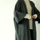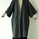 和式的罩衫長袍,搭配雙色混織的粗織布料,