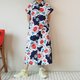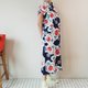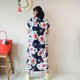 昭和レトロな雰囲気たっぷりの藍地に赤いバラの模様の浴衣地でシャツドレスをつくりました。