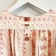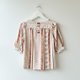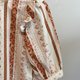 Crafted from cream-colored cotton fabric, featuring a subtle stripe pattern with brown and red accents.