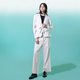翻折配色腰頭棉麻西裝褲 - 女長褲 - 棉.麻 白色