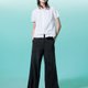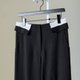 / 棉麻西裝長寬褲 / 配色翻折異材質拼接腰頭 / 兩側斜開口袋 / 剪裁流暢大器 細膩設計點綴