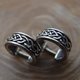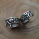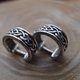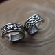 The small wide silver men's earring is decorated with Celtic patterns and pagan Slavic amulets.