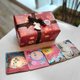 內盒外觀以中秋節包裝彩紙包裝, 緞帶顏色與吊卡裝飾隨機搭配。