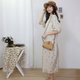 洋裝版型寬鬆,襯衫式門襟穿著舒適便利,滿版印花面料風格清新,腰部剪接打褶設計增加層次分量,左右側口袋實用性滿分,裙襬處帆布標裝飾點綴,款式日系休閒適合日常外出穿著。