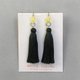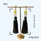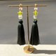こちらは、オミナエシ(Patrinia scabiosifolia) をイメージしたイヤリングです。落ち着きのある深いグリーンのタッセルに、やわらかく輝くラメ入りクリアビーズと、明るい印象を添える星形モチーフを組み合わせています。