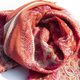 1 - 用膠盆放入適量洗衣粉,以微暖清水調校均勻,把圍巾平放水盆中,雙手張開用力按壓二、三十下,讓洗粉溶液來回穿過圍巾纖維縫隙,這樣纖維才不會互相纏結。