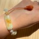 - A jade bracelet in warm tones of orange, yellow, and soft green — like sunlight flowing through a garden. Hand-carved roses bloom along the bracelet, ending with a magnolia flower for a gentle, elegant touch. 🌸☀️🌿