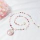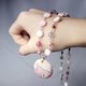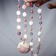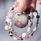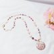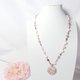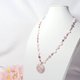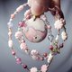 本件嚴選畫面寫意、柔靜的玫瑰石圓墜,鍊身精選媲美鑽石之**彩色尖晶石**,與富有靈性的有機寶石**女皇貝(粉硨磲)**,共同交織演繹浪漫多情、富貴細膩的風韻。