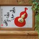 •畫面留白處,根據整體佈局**題寫客製內容**手寫毛筆書法,墨韻隨性而生動,與葫蘆渾然一體。