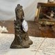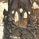 - 稀有法國古董懷錶架,用於懸掛和展示懷錶架,使其成為可讀取時間的桌面時鐘,同時兼具裝飾擺件價值。莊嚴的哥德式尖拱窗櫺與浪漫的田園風格完美融合,雕塑頂部有象徵神聖守護的全視之眼符號,下方場景細膩刻畫了森林中鹿群的靜謐景像