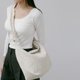 supportingrole 輕盈柔和抽繩元素多用手提斜肩背包 米白
