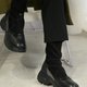- NO216彈力襪靴 異材質拼接與厚底的輪廓設計 打造秋冬較為中性的風格穿搭 鞋口內含柔軟彈力布 內側則有透氣功能 兼顧包覆性與穿脫方便